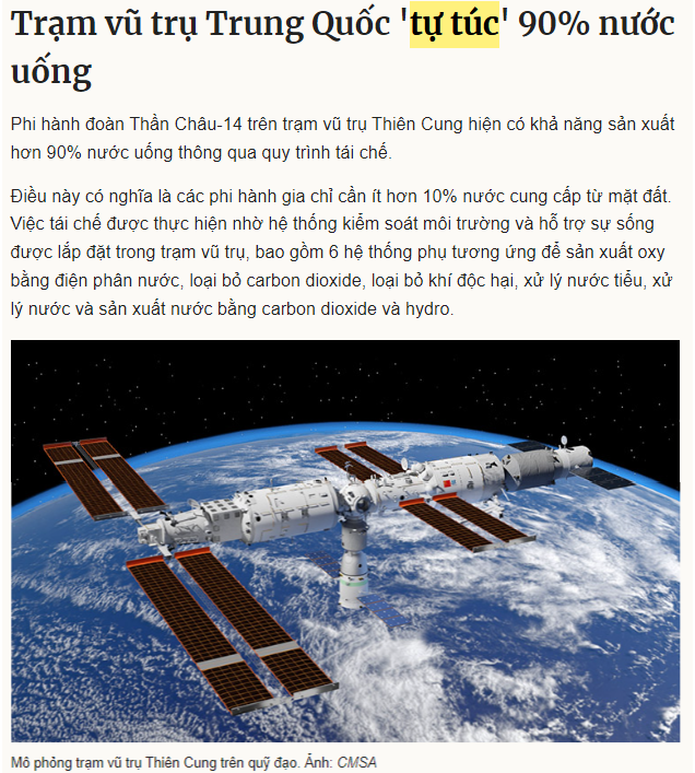 90% 물을 (자급)자족하는 중국의 우주정거장